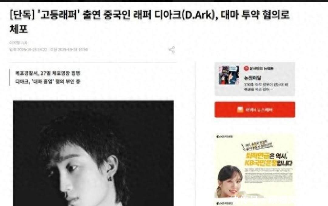 据韩媒New Daily新闻10月28日披露,中韩嘻哈界现象级歌手D.Ark(本名金宇林)因涉嫌分销、吸食大麻被木浦警察厅逮捕。这位刚满21岁的青年艺术家身着囚服的照片在网络疯传,与他在舞台上的张扬形象形成强烈反差。警方通报显示,从其住所查获的毒品通过暗网交易渠道流转,涉案金额超5000万韩元(约合人民币27万元),而当事人至今坚持否认所有指控。